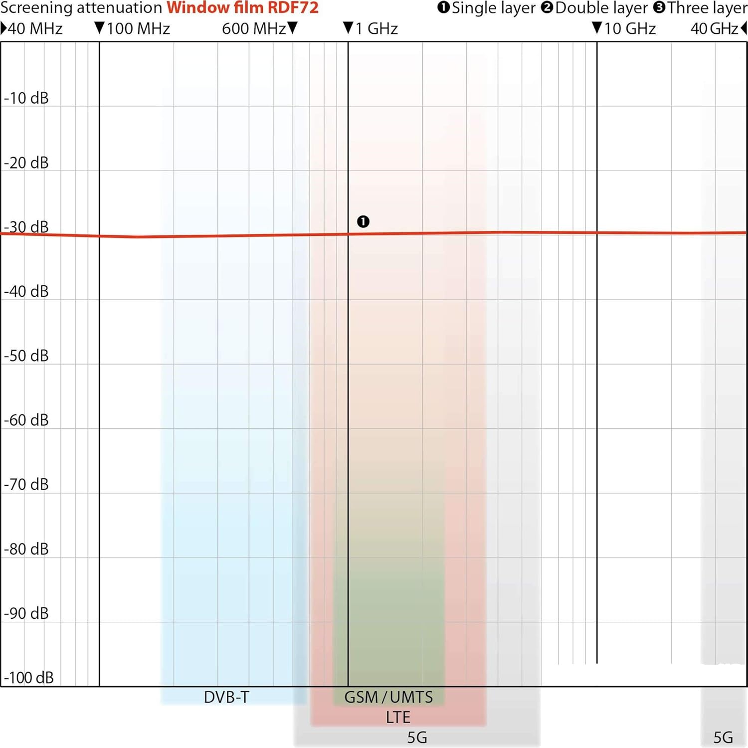 The RDF72 formulation delivers consistent attenuation across a broad spectrum, helping create a controlled, lower-EMF environment indoors.